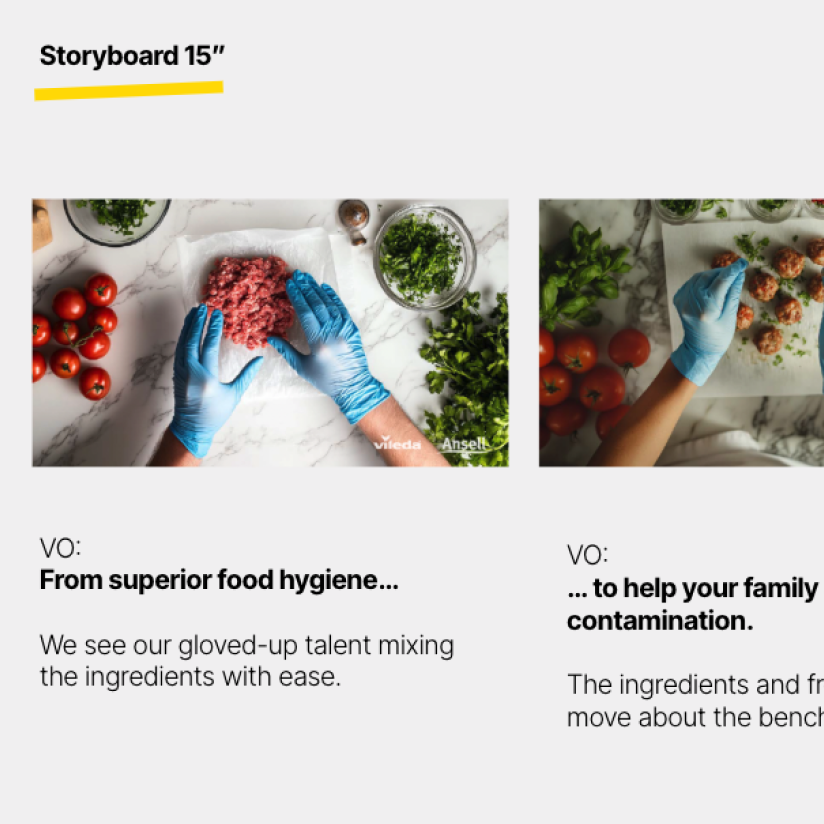 Creative Campaign and Production: positioning Vileda Ansell as the superior glove for responsible food preparation.